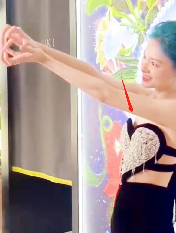 因为身材过于纤瘦骨感的原因,当邱天抬手对着镜头摆动作时,她胸口前的衣服还明显空出了一片。