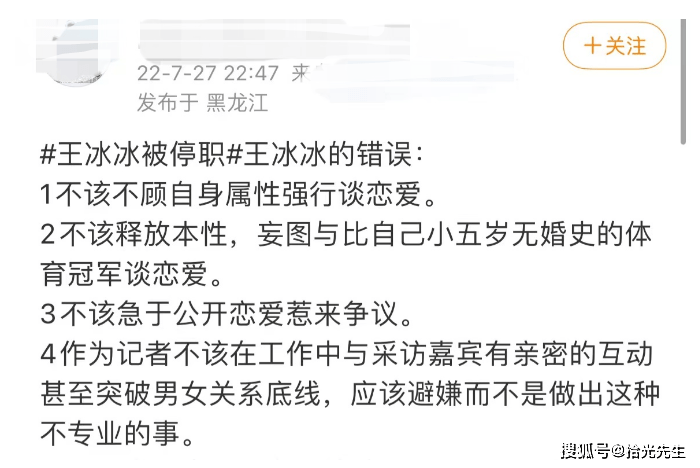 该网友的分析有一定的道理,但拾哥认为,王冰冰的主要问题还是“公私不分”,把私人的感情问题牵扯到了工作中,或者说工作中掺杂了感情私事。作为知名主持人本就颇受众人关注,再做不到避嫌,肯定会引起争议。
