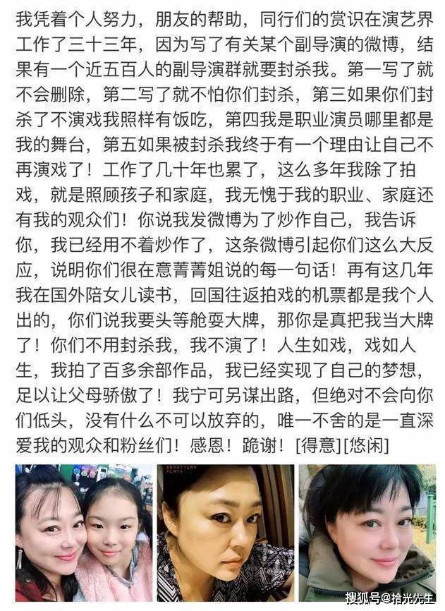 李菁菁显然没有多么强大的背景,于是在她拒绝潜规则并曝光此事3个月后,她愤怒地表示,自己被一个“近500人的副导演群封杀了”。