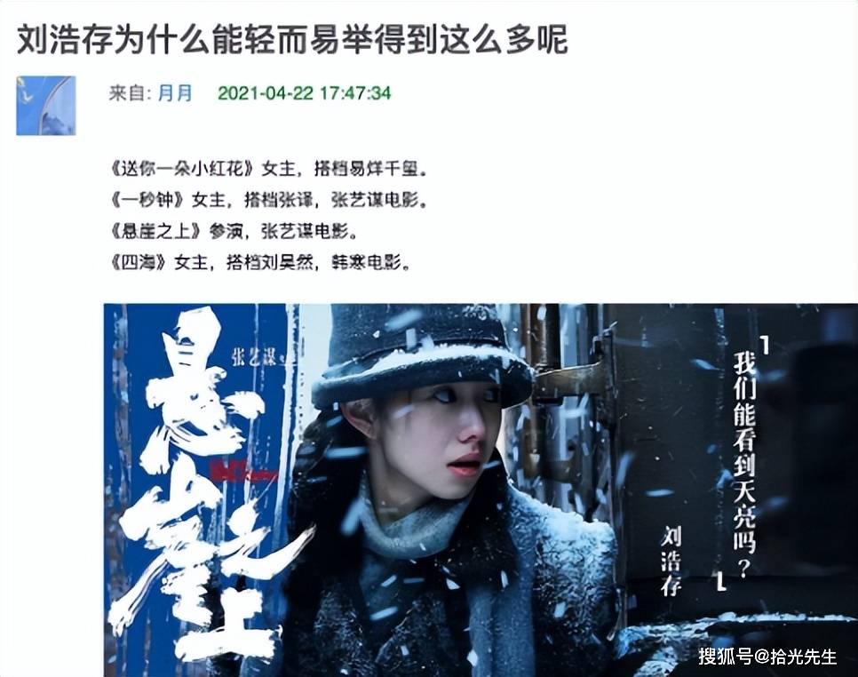 可她的演技怎么样呢?有粉丝夸她是“周冬雨接班人”,但人家周冬雨是影后,演技早已被观众盖戳认可过的,刘浩存呢?