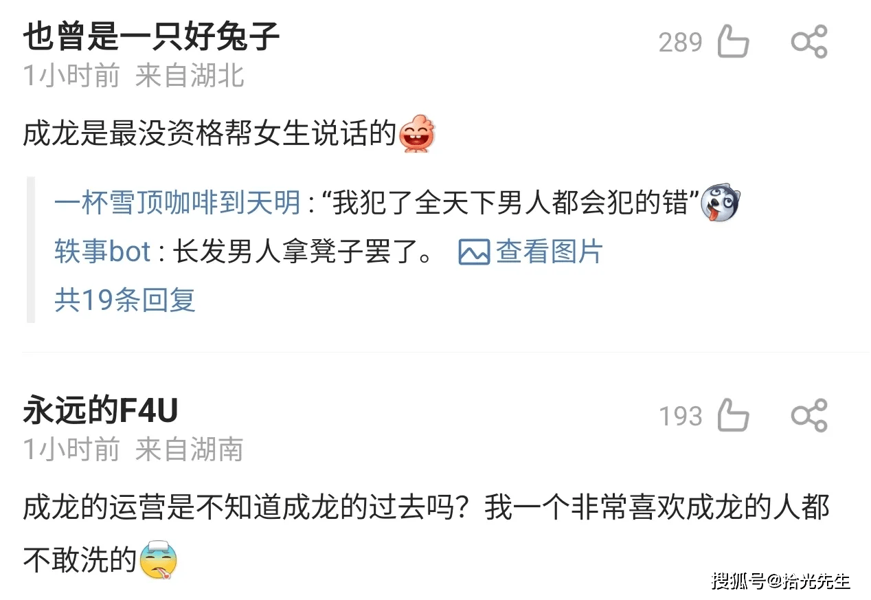 网友的质疑可以理解,但不可否认,成龙作为在观众和同行里影响力都很高的艺人,为受伤女孩发声的出发点肯定是好的。而相比成龙、韩红、金星等这些仗义发声的明星,有一个百万粉丝的网红才最应该被谴责。