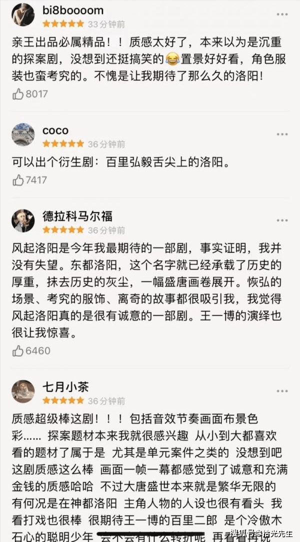 比如,有人吐槽叙事节奏凌乱,演员演技做作。比如有人上来就夸“这部剧没让我失望”,有人大赞音效、节奏、画面、布景超棒……