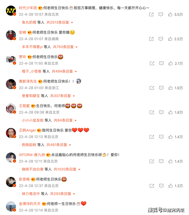 每一年的4月28日,何炅生日这天,他的社交账号的评论区都会有一线、二线、三线……十八线的艺人送祝福。