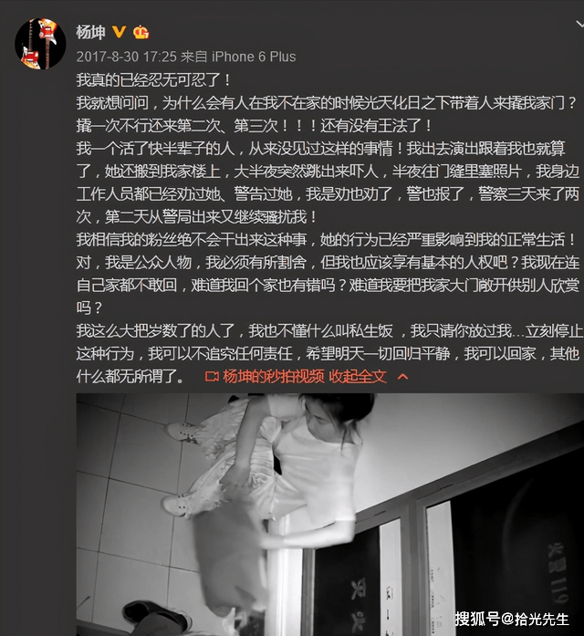 还有,杨坤的一个粉丝为了能和他近距离接触,直接租了他家楼上的房子,然后全天候守在杨坤家门口,或趴在门上喊话,或半夜敲门,更疯狂的是,她还接连3次试图撬开杨坤家的门,逼得杨坤几近崩溃。