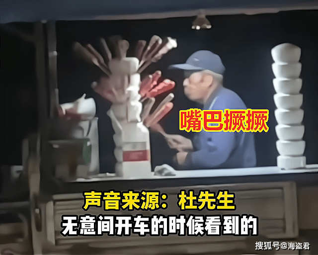 当时拍摄者杜先生和朋友开车经过涉事路段时遇到红灯,看到这个大爷在卖糖葫芦,从小就喜欢糖葫芦的他便好奇地多看了两眼,这一看就看出了不对劲。
