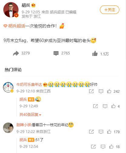 很多网友在下面留言,说胡兵看上去最多只有40岁,他的脸被天使吻过。更多网友说他是“冻龄男神”。