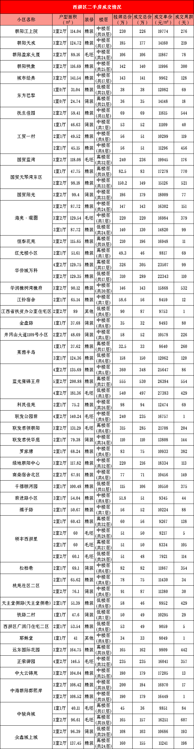 ◐◐◐◐●☛█▼▲东方金报网███████东方金报网HTtp://www.dfjb.net▼▲▼▲▼▲▼▲▼●●●●●●●▼▲▼▲▼▲为了让大家能够更清楚地了解各区域小区的具体情况,我们对南昌上月二手房成交的具体数据做了一个详细统计,包括成交户型、楼层、挂牌价、成交价和成交周期等。