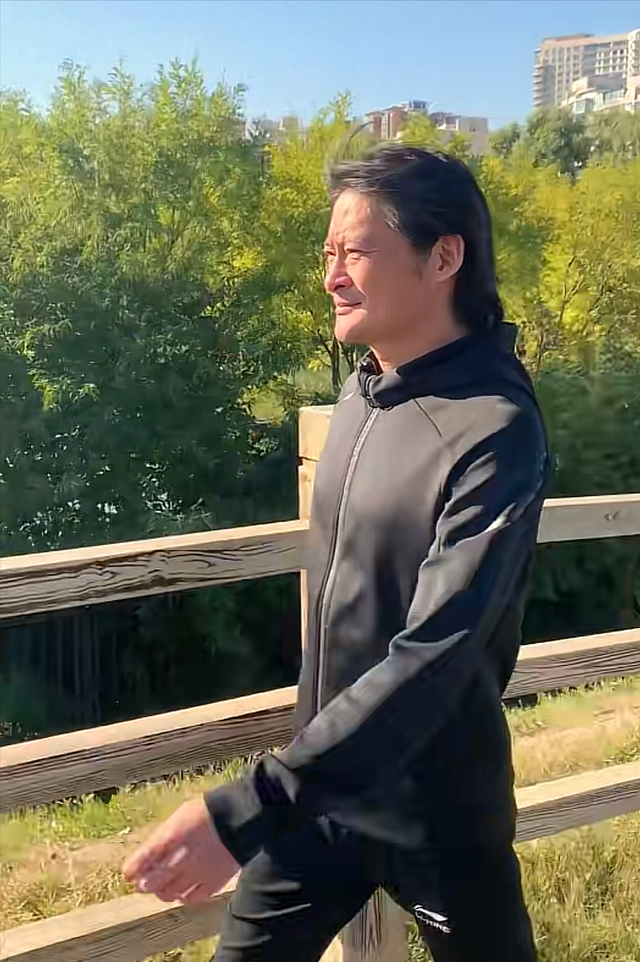 55岁景岗山不再沉迷喝酒,每天在北京大街上健步走,气色越来越好