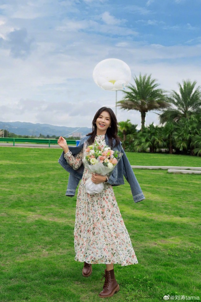 23日,刘涛晒出一组最新照片。她身穿牛仔夹克搭配碎花长裙,手里拿着气球与鲜花,温暖治愈画面美好。