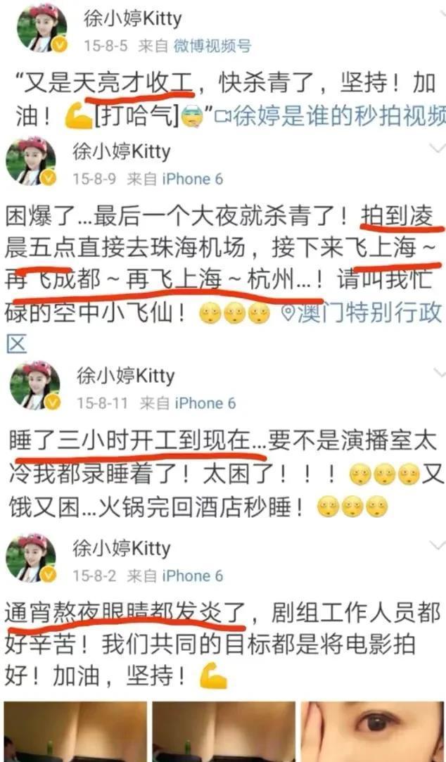 就这样,那一个星期,徐婷每次都是熬夜赶场,从一个剧组赶到另一个剧组,常常就是一个通宵一个通宵的熬。