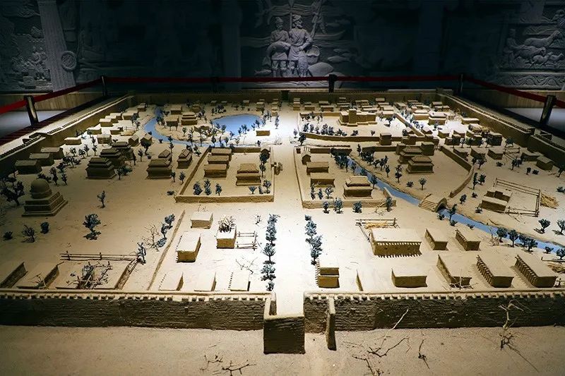 2021年3月24日,新疆若羌县楼兰博物馆展出的楼兰古城复原模型。图|视觉中国