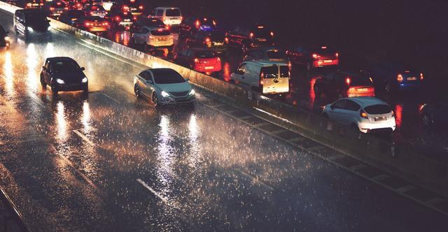 淅淅沥沥的雨下个不停,路面的低洼处,一滩滩积水将城市的夜色装入其中,一辆电瓶车驶过水坑,溅起朵朵水花。