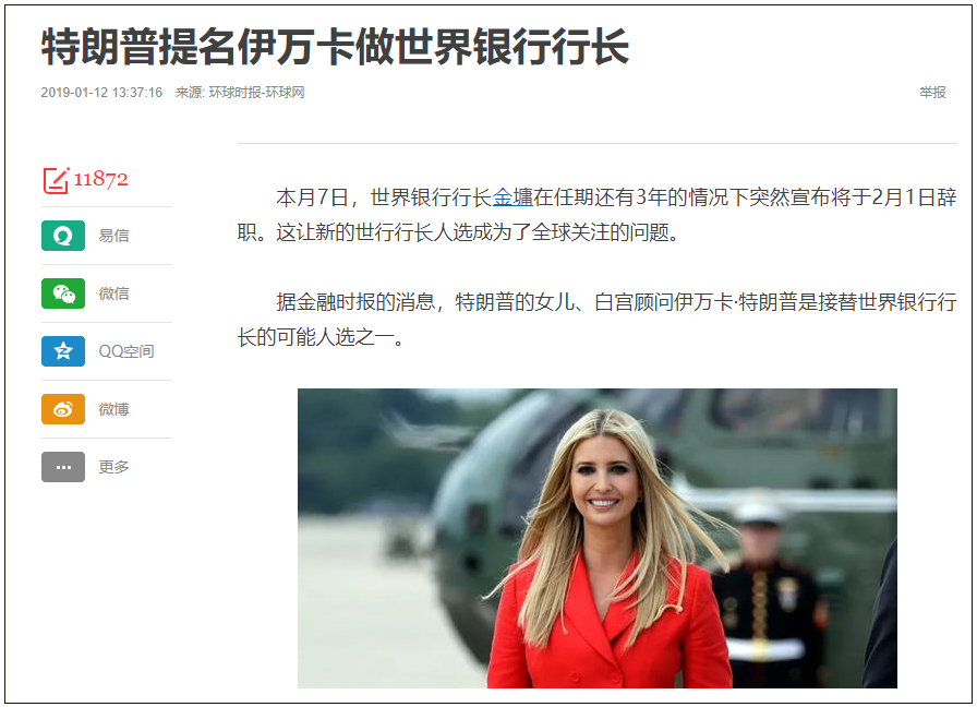 伊万卡曾是白宫的顾问,但是特朗普曾多次想让伊万卡担任更重要的岗位。比如,让伊万卡担任联合国大使、世界银行行长等职务……
