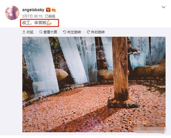 而baby呢,据说正在拍摄仙侠剧《尘缘》,近日baby在社交平台晒出“收工”图,就有粉丝表示baby在拍摄新剧,但如今《尘缘》还未官宣,一起期待下吧!