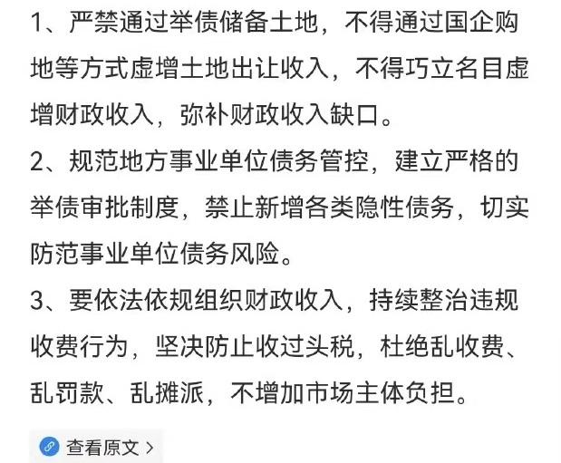 第一拳,根据财政部最新发布的信息显示,严禁地方通过举债储备土地,不得通过国企购地等方式虚增土地出让收入。啥意思?