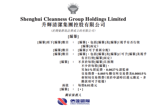 财联社11月9日讯(编辑马轶杰)据港交所披露,11月8日,升辉清洁集团控股有限公司递交上市申请,信达国际为独家保荐人。公司曾分别于2021年4月14日、2022年4月24日递表港交所。
