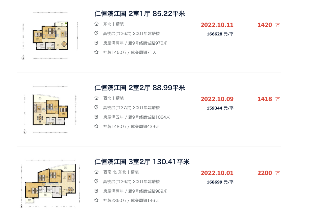 仁恒滨江园,位于寸土寸金的浦东陆家嘴,今年9月一度冲上21万/平,最新成交价16-17万/平。