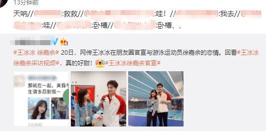 此前,有网友爆料央视人气记者王冰冰在朋友圈官宣与游泳运动员徐嘉余的恋情,一时之间引发网友们关注。