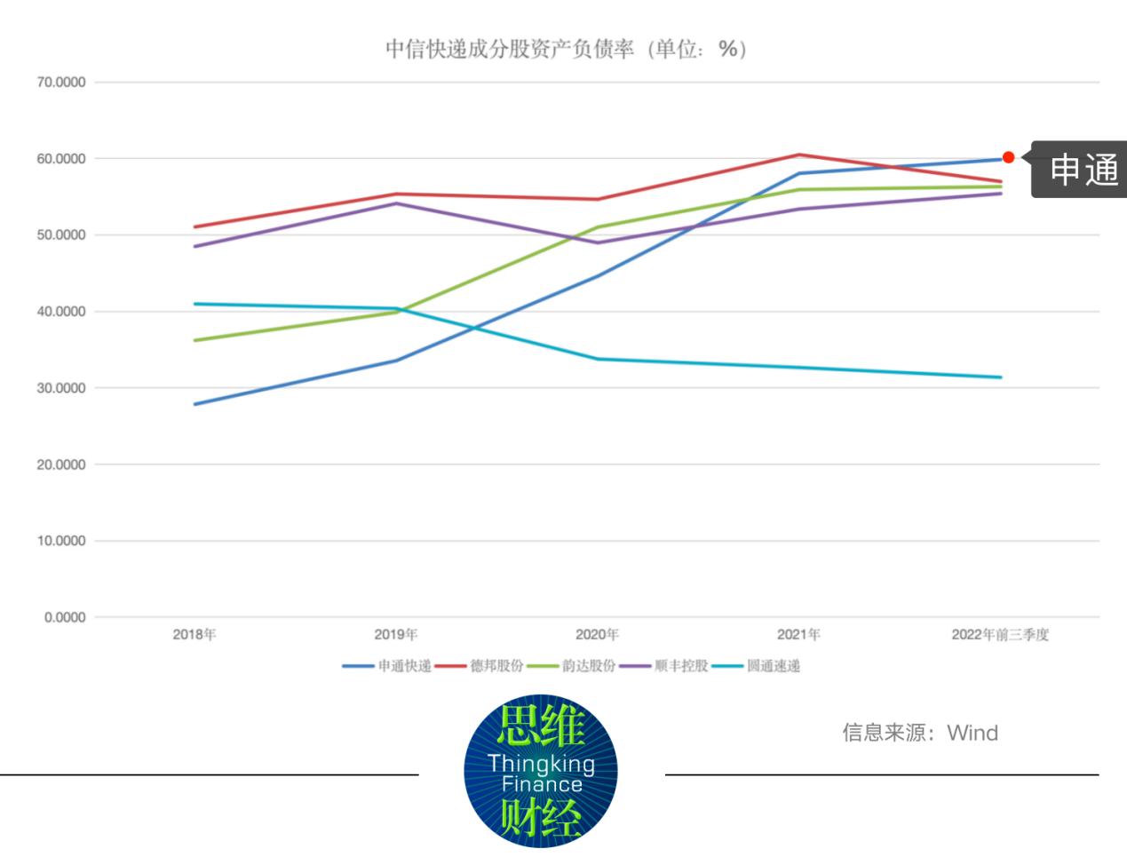 快递行业基本靠的是薄利多销,申通快递为了应对“价格战”,资产负债率迅速飙升至业内第一。