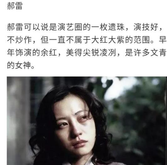 有人说:郝蕾像似演绎着中的一枚遗珠,她的演技好,不炒作,也不属于大红大紫的范围,早年的她饰演的余红,美得尖锐凌冽,是许多文青的女神。