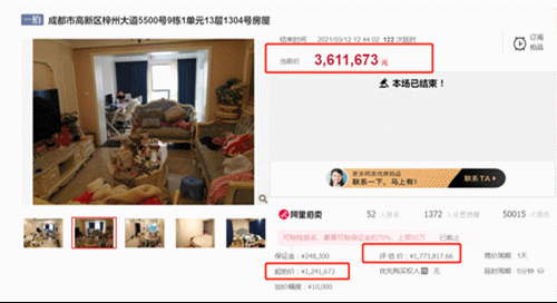 中德英伦联邦,起拍价124万,成交价361万,溢价率191%城南名著,起拍价133万,成交价226万,溢价率70%中海城南一号,起拍价542万,成交价783万,溢价率44%天悦府,起拍价235万,成交价653万,溢价率177%