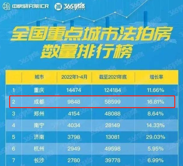今年成都也不落下风,据365淘房统计,前1-4月成都法拍房增长了9848套。