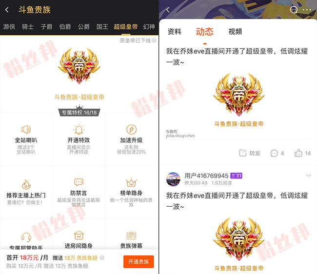 接下来这位“用户哥”的操作也是十分豪气,一下子开通了8个月的超级皇帝贵族,这一下子就是100万啊。看这架势这位新晋大哥“用户哥”是要常驻斗鱼一直玩下去了。