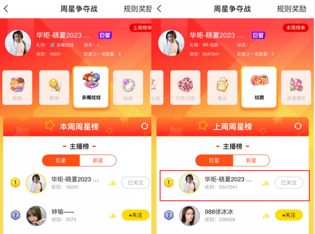 不过李先生能够签下晓夏确实也是正如他所言,的确是捡到宝了。晓夏在回归后的短短数月间,就获多位神豪大哥支持,也在时回归后收获了国王。而在年度期间也是得到了神豪“鱼总”的鼎力支持,最近又来了一位大哥“少年哥”。