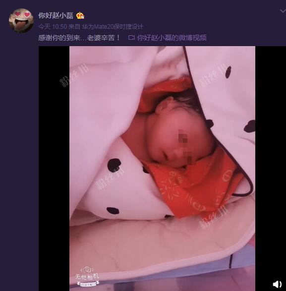 3月15日上午,赵小磊发布微博公布了自己喜得千金的喜讯。