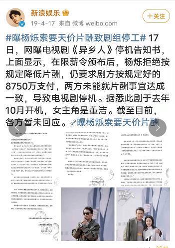 2017年,电视剧《异乡人》正在拍摄,正巧赶上颁发了限薪令,演员们的片酬全部都要做出调整。