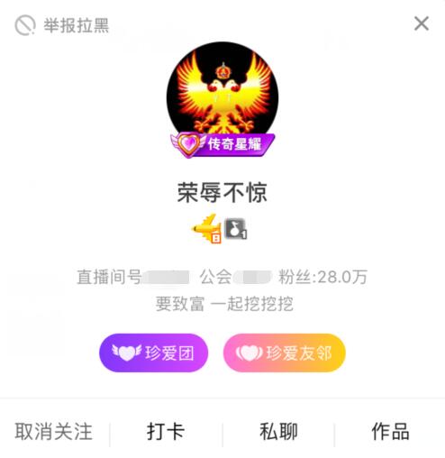 之后这位最初以“土豪”进入YY直播平台的玩家也在YY上开直播做主播,并且一做就是好几年。之后还进入了曾经在YY上著名的神豪团队“鹰团”,“荣辱不惊”算是一位从土豪变成主播最为敬业的一位了。