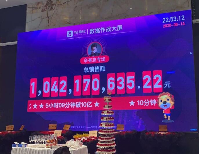 在6月15日凌晨时分,辛有志带货直播销售额已经突破12亿。