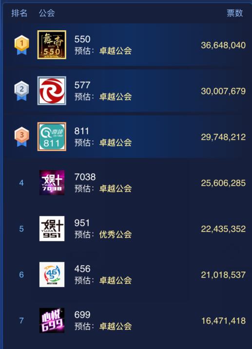 而进入公会预选赛的第二天,整体的“紧张”氛围就少了很多,各大公会的票数也是跟首日想必,票数上也是下降了很多。