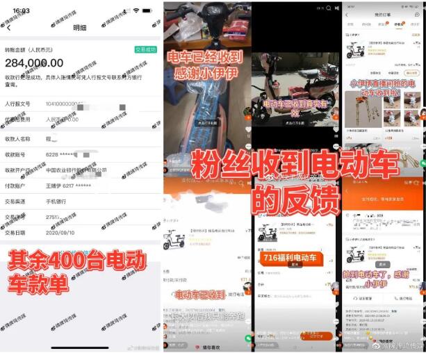 关于很多主播说牌家送电动车租来的说法,牌牌琦已经声明过了全部真实送了,晚间牌牌琦公司账号发出声明,造谣污蔑,断章取义,捏造事实,肆意抹黑的恶劣行为已对李孟琪先生的工作生活造成不良影响,公司已对虚假信息及侵权内容的证据作了保全工作,敬请立即删除侵权信息的 全部内容,否则公司将采取法律手段维权,此外还晒出了当时购买电动车的转账记录以及粉丝收到电动车的反馈截图。