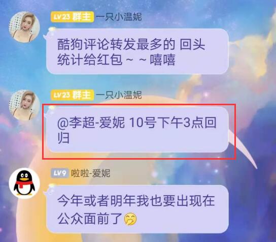 并且在与粉丝们的互动中透露,自己回归的时间已经临近。