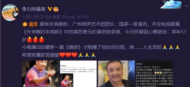 10月15日,媒体曝出他疑因心梗逝世,享年51岁。