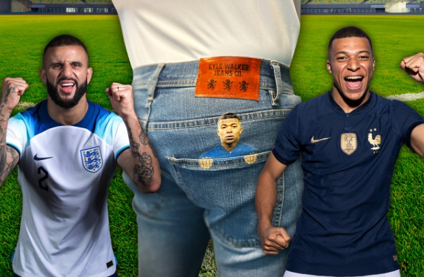 赛前,防守住姆巴佩被视为英格兰获胜的关键,而这个任务被交给了英格兰队的凯尔·沃克。于是,《太阳报》又做了一条牛仔裤,裤子以姆巴佩被“装”进沃克口袋作为装饰图案。