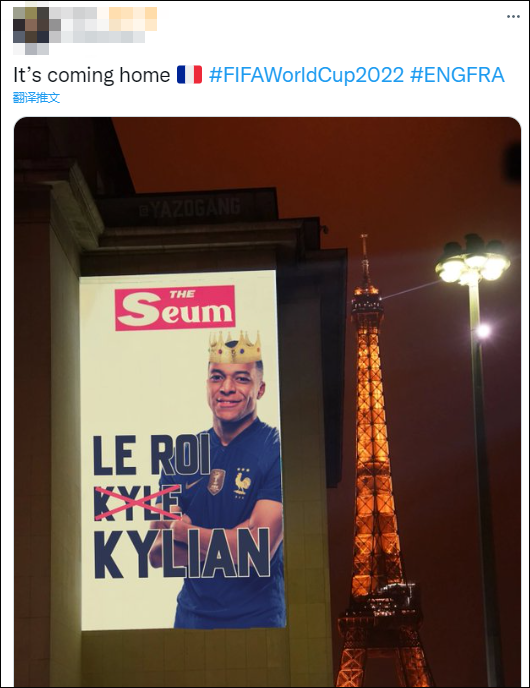 有网民直接将《太阳报》之前的海报广告进行了二次创作,“广告登反了,是姆巴佩看着英格兰队回家了”;