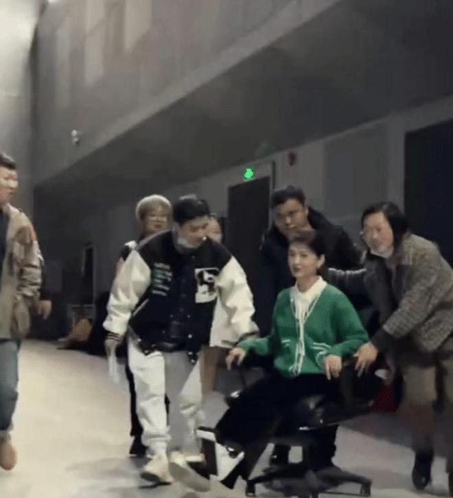 我们看到的是七八个工作人员的搀扶,而看不到的是还有二三十个工作人员已经为这场栏目的直播准备了很久。