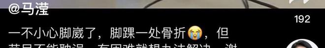 马滢随后也发了短视频来澄清,自己并非受了什么大伤,而是不小心崴了脚造成脚踝骨折。