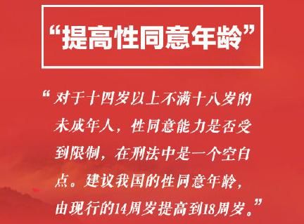 2020年全国人大代表会上,蒋胜男建议,将性同意年龄由14岁提至18岁。