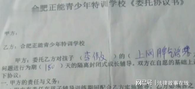 李傲母亲再三确认学校不会有任何体罚孩子的行为之后,同意了正能教育学校对李傲进行180天的隔离封闭式成长辅导。