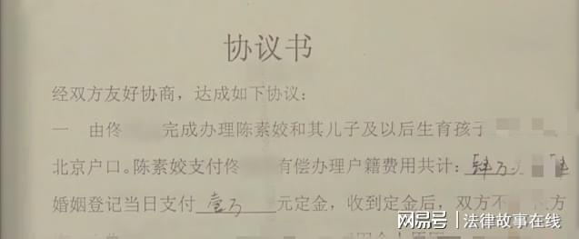 佟刚知道陈素姣是有目的地结婚,所以了签一份协议,佟刚帮助陈素姣母子办理落户,陈素姣需要给佟刚支付费用。