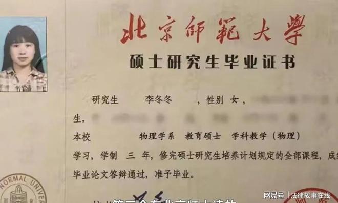 小女儿李冬冬,是北京师范大学的在职研究生。