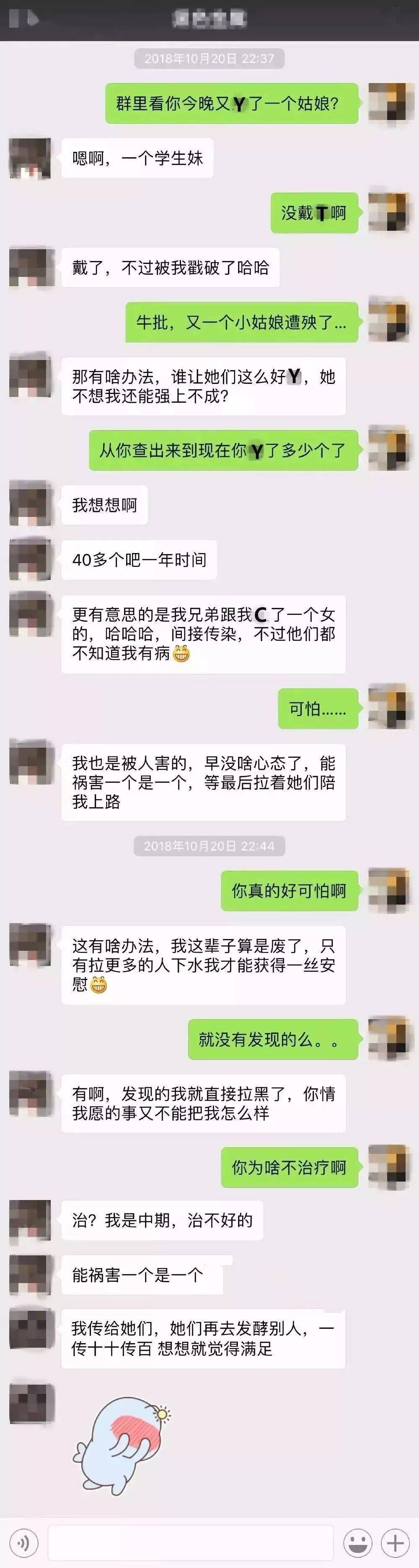 某个社交圈HIV人渣感染者与朋友之间的对话: