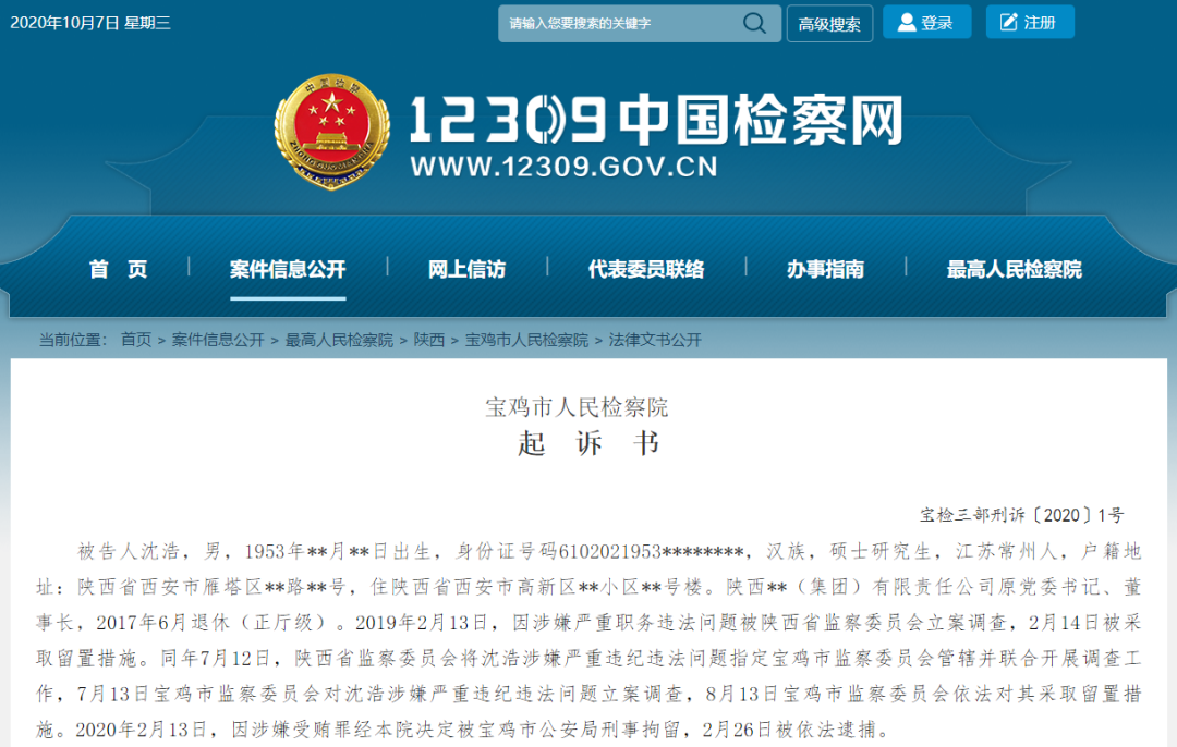 同年7月12日,陕西省监察委员会将沈浩涉嫌严重违纪违法问题指定宝鸡市监察委员会管辖并联合开展调查工作,7月13日宝鸡市监察委员会对沈浩涉嫌严重违纪违法问题立案调查,8月13日宝鸡市监察委员会依法对其采取留置措施。