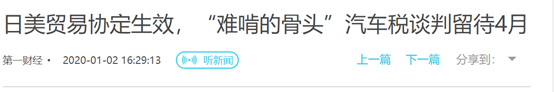 实际上,汽车产业是日本的核心产业,美国的征收关税问题是目前日本面临的最重要的对外贸易问题,2020年还要继续谈判。