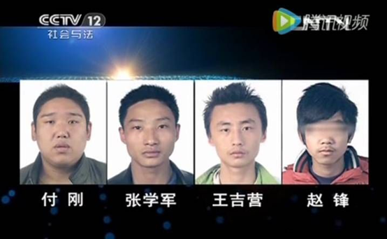 下图是四个罪犯,最右边的赵锋因为是17岁的未成年人,只判了无期徒刑,其他三人均被判处死刑。