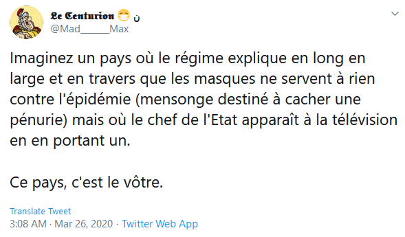 一位名叫埃尔韦·布兰查德的法兰西岛感染急救中心医生于3月6日告诉《费加罗报》如果没有任何症状也不是医护人员,带着口罩是没好处的。